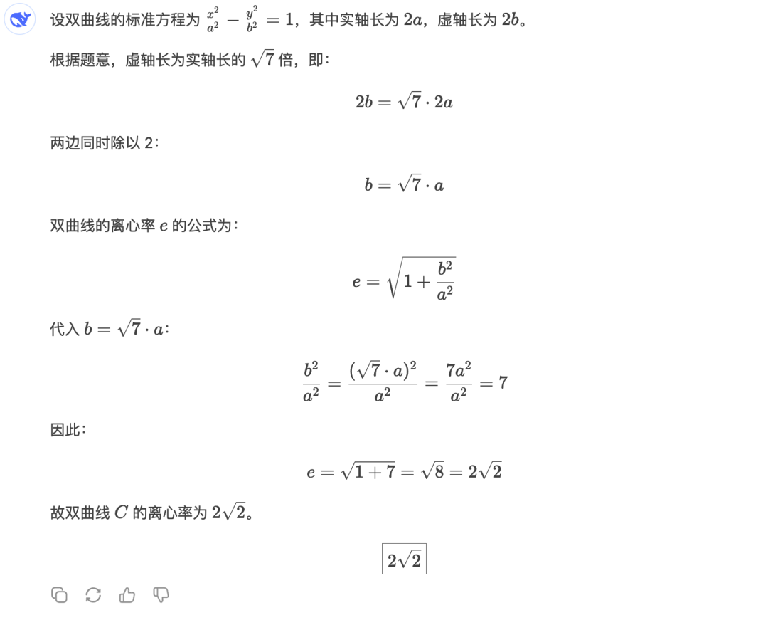 答案是2√2,两个版本的模型都得到了正确结果,但在呈现上有所不同。