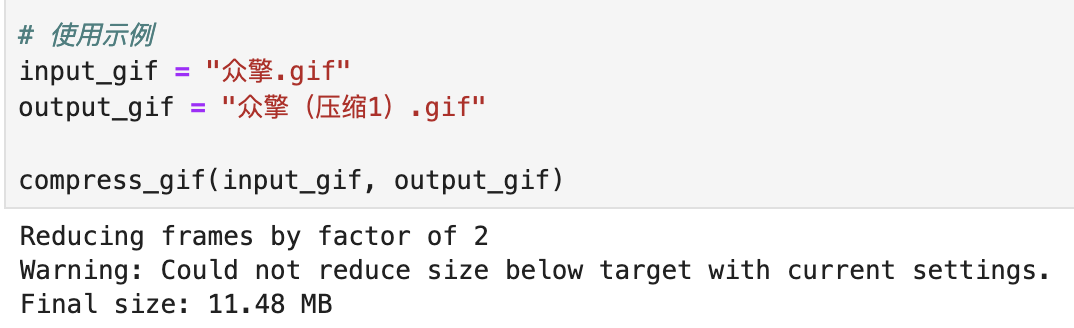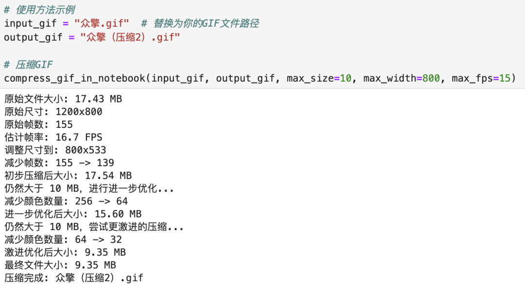 帮我用python写一段代码,把输入的gif图压缩到10M以下。