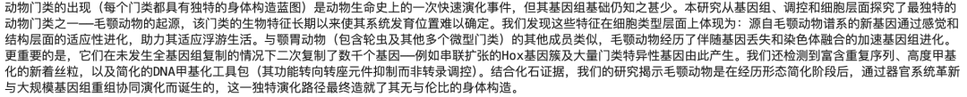 摘要选自Nature最新研究:《独特毛颚动物体型的基因组起源》。
