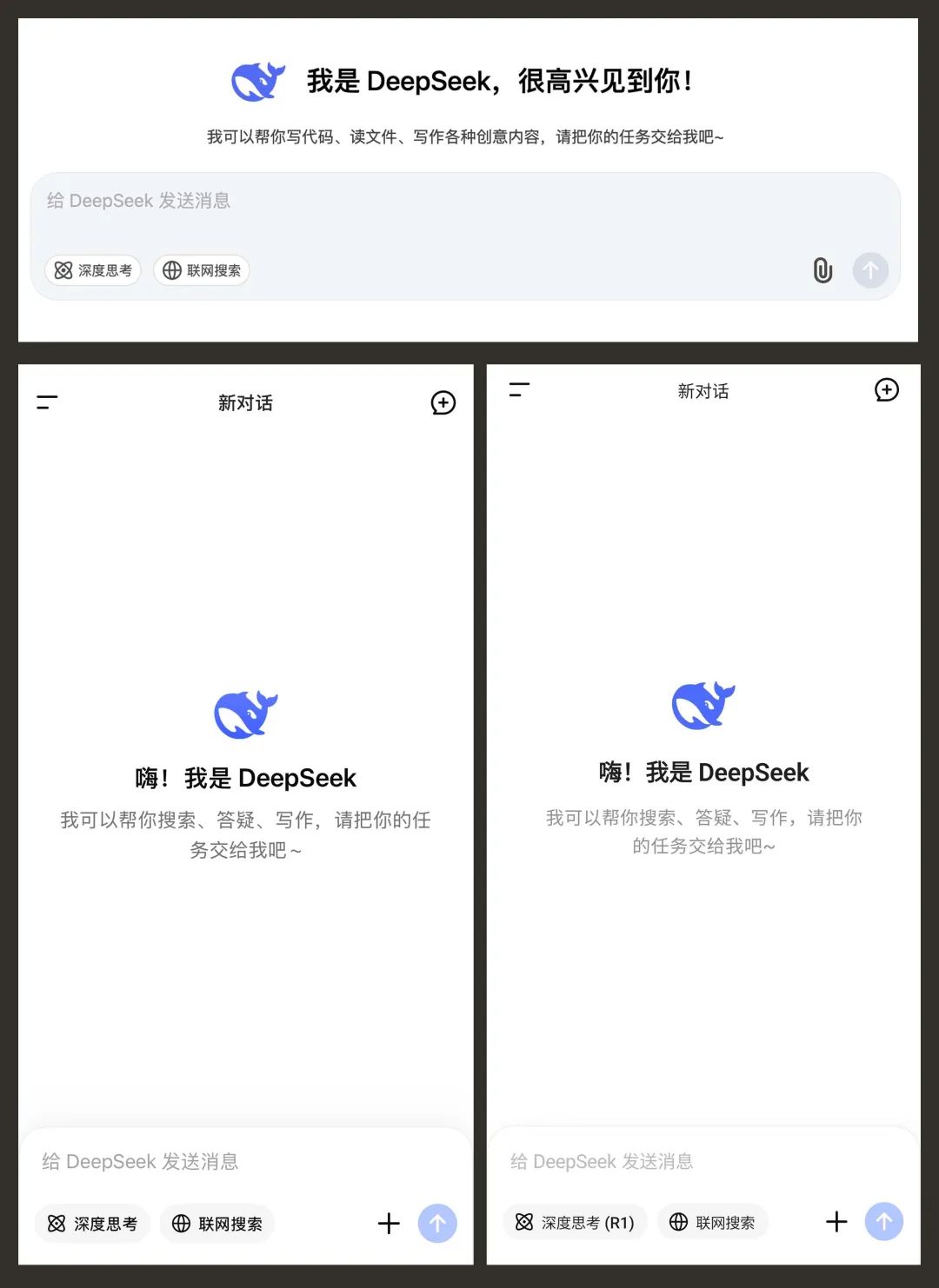 不过要说最明显的更新,大概是DeepSeek网页端界面的【深度思考(R1)】悄悄变成了【深度思考】。