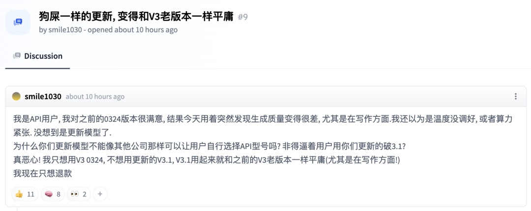 我们比较了V3.1和V3,注意到它在编程表现、创意写作、翻译水平、回答语气等方面都出现了不同程度的变化。
