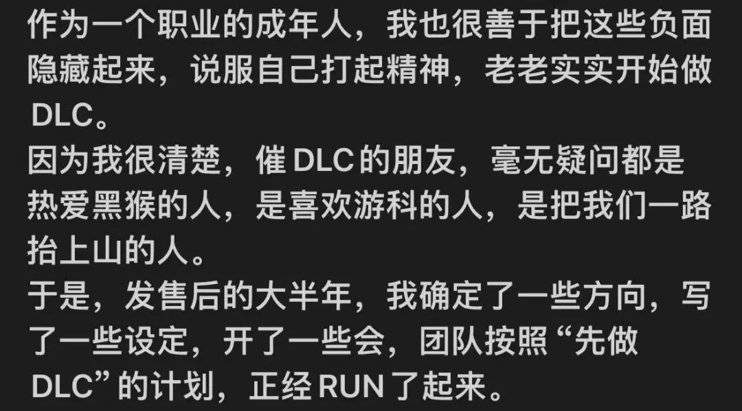 于是,对于老玩家心心念念的《黑神话:悟空》DLC,游戏科学的CEO冯骥给出了回应:先做新游戏,准备妥当后再重新开始DLC。