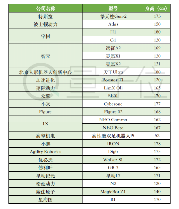 我们也盘点整理了部分热门双足人形机器人的身高,大家可以感受一下硅基生物们的“发育”情况: