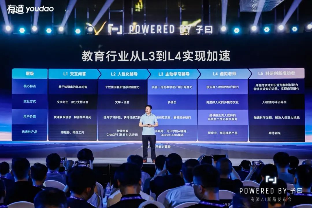 发布会现场,网易有道CEO周枫提出教育AI应用能力L1-L5分级标准,并指出: