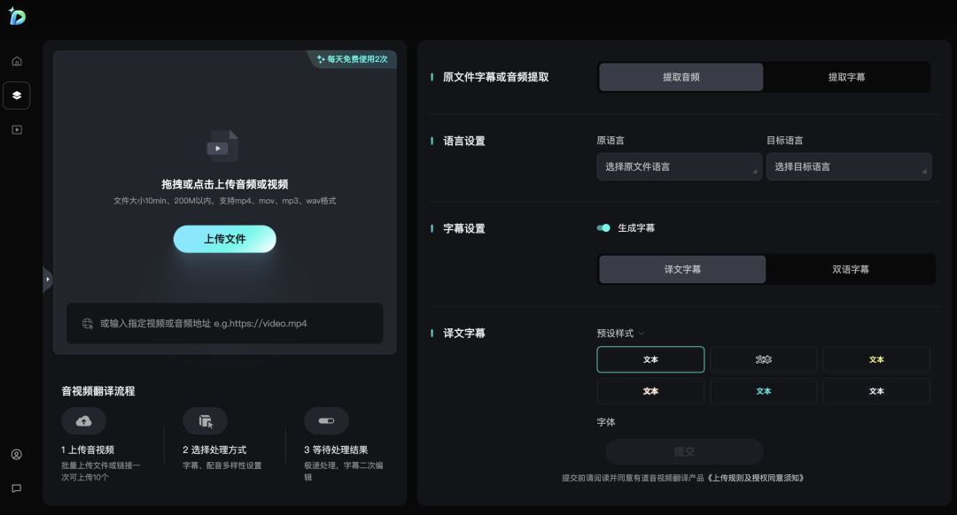 在软件方面,有道新推出的音视频翻译平台,直接把“听录-识别-翻-配音”全流程打包搞定,管你啥语言的音视频都能处理。