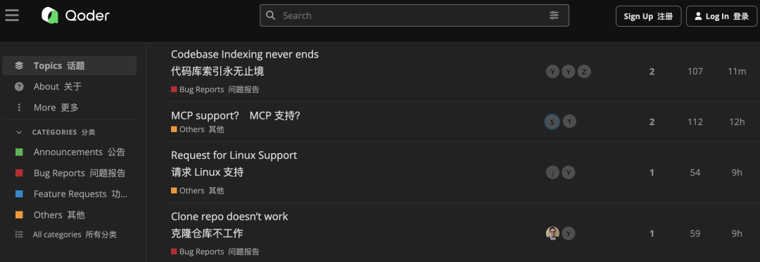 顺带一提,除了基础平台,Qoder还开发了一个论坛,支持用户交流和反馈错误报告。