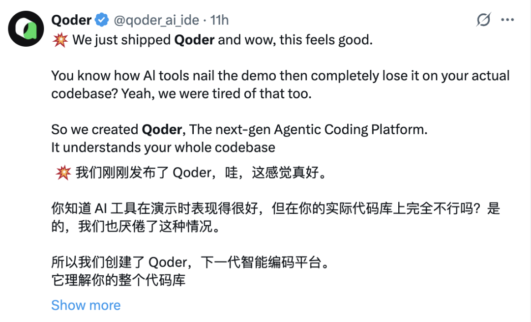 Qoder一经发布,马上获得了网友们的支持和关注。