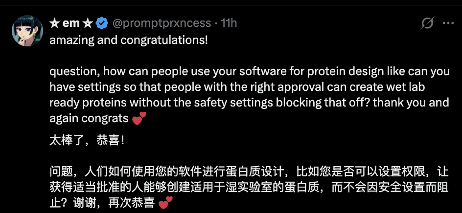 还有网友表示出了自己的独特想法,想让获得批准的人能够创建出适合湿实验室的蛋白质,而不受安全限制的影响。