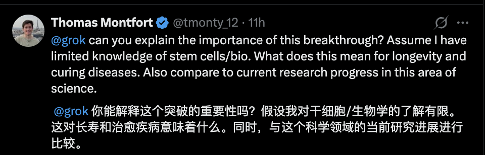 也有一些网友对此研究表现出疑惑,主要集中在长寿和治愈疾病方面(用Grok重在掺和)。