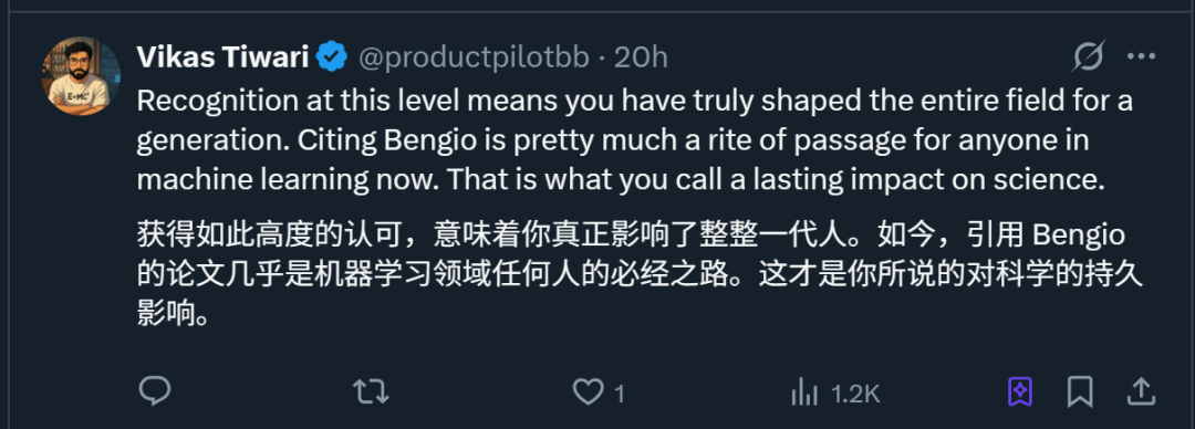 也正是因为这些研究,Bengio被公认为人工智能专家和深度学习先驱,堪称影响了一代人。