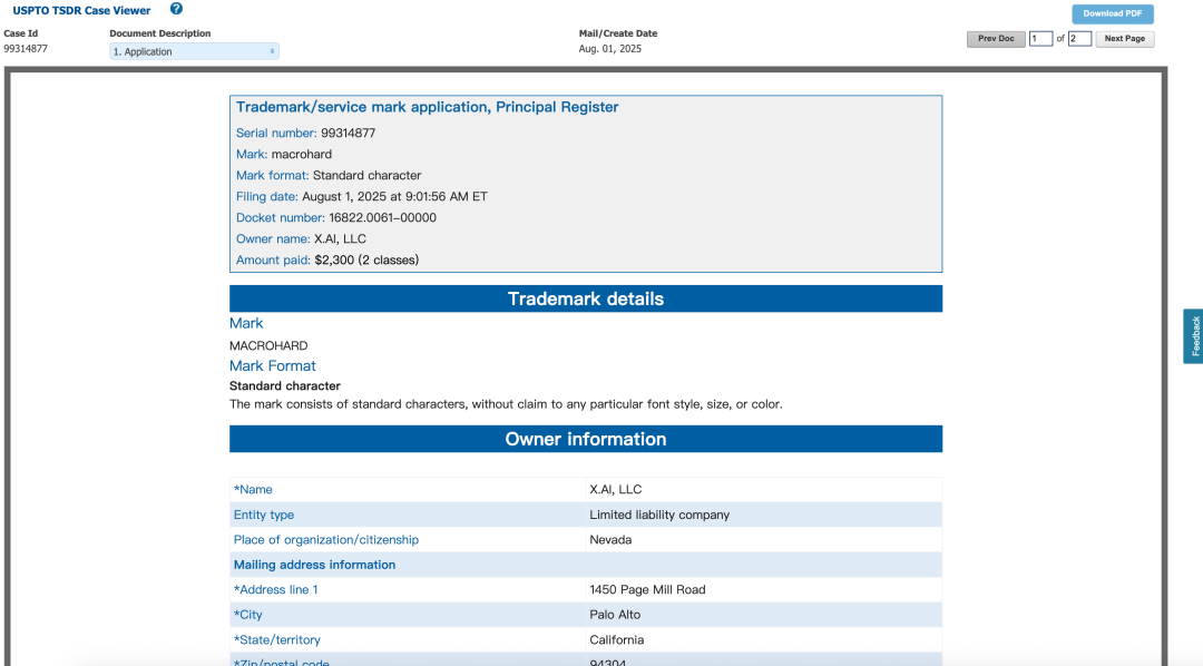 其实巨硬这个名字,马斯克早在本月初的时候,就已经向美国专利商标局提交了商标申请。
