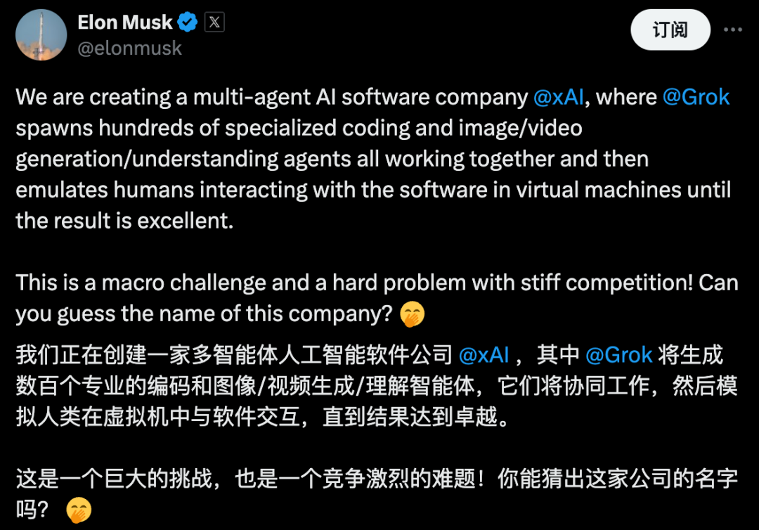 具体来说,就是让旗下的Grok,衍生出数百个专门的AI智能体,有的负责编码,有的负责生成图像视频,有的负责理解用户需求……