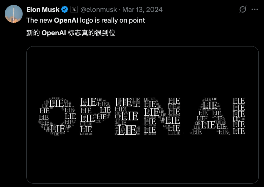 这不,老马又卷土重来了,虽然这次不是有关OpenAI定位的事了,但在和OpenAI针锋相对这件事上,老马的态度还是一以贯之的。