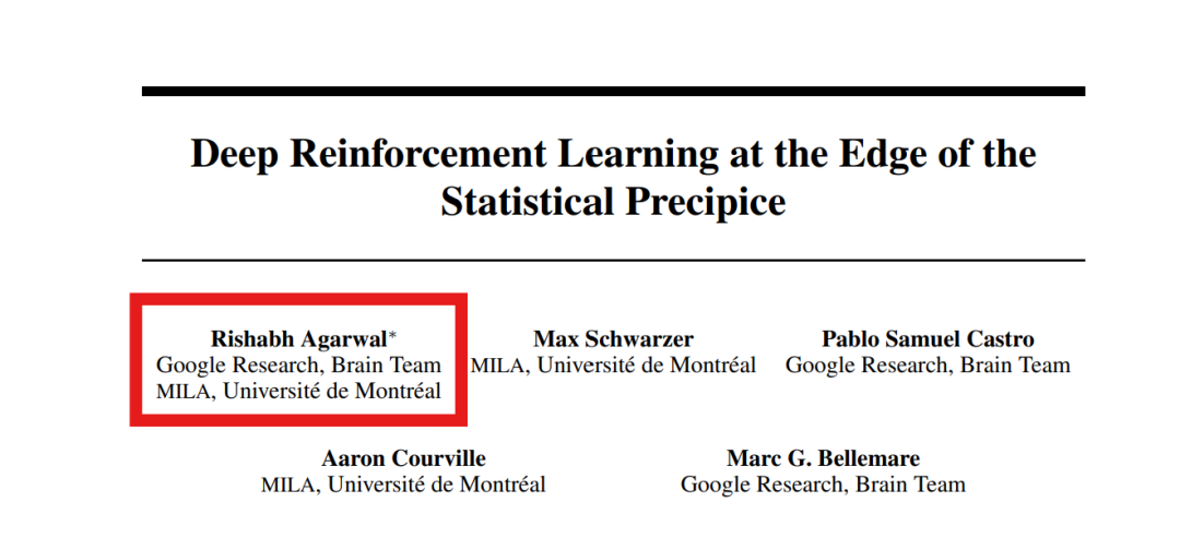 2021年,他还发表了论文《Deep Reinforcement Learning at the Edge of the Statistical Precipice》,一举斩获NeurIPS杰出论文奖。