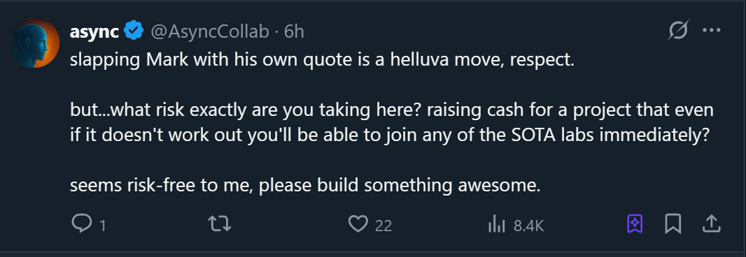 Meta组建超级智能团队的想法非常引人注目,但我最终选择听从扎克伯格的建议:“在这个瞬息万变的世界里,最大的风险就是不去冒险。”