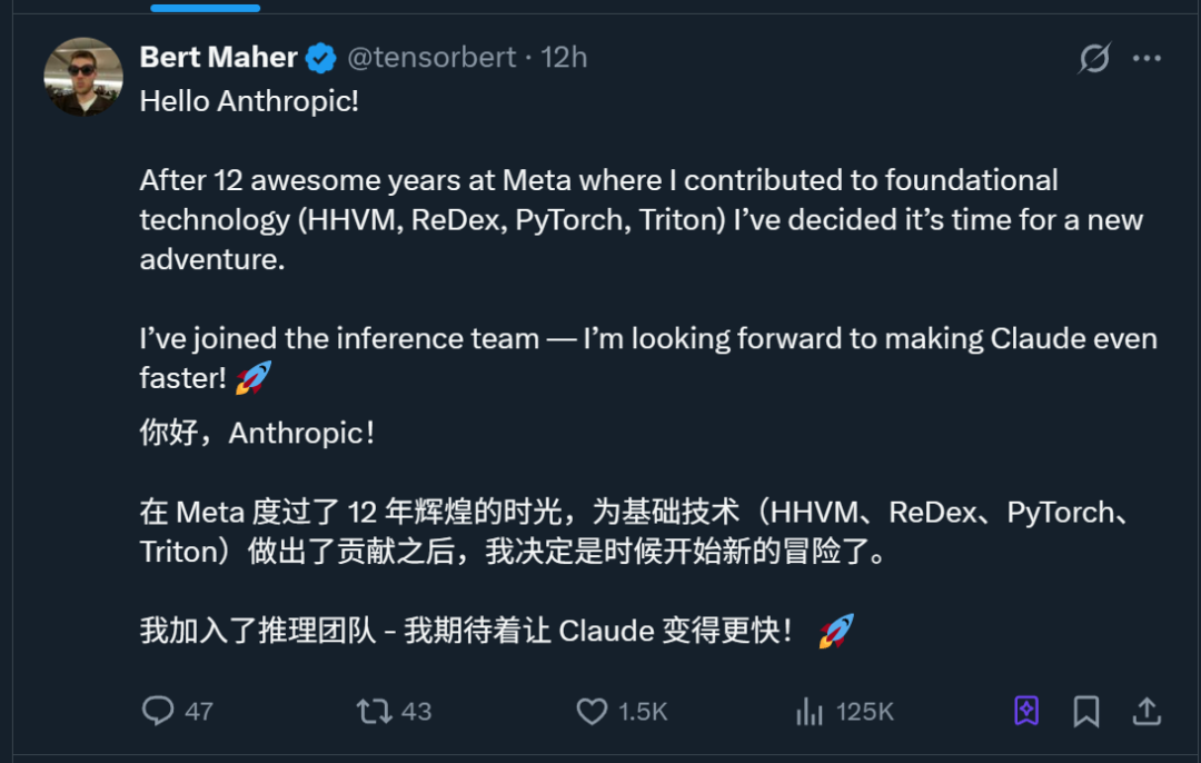 而且下一站还是Anthropic的推理团队(属于直接拥抱曾经的竞争对手了)。