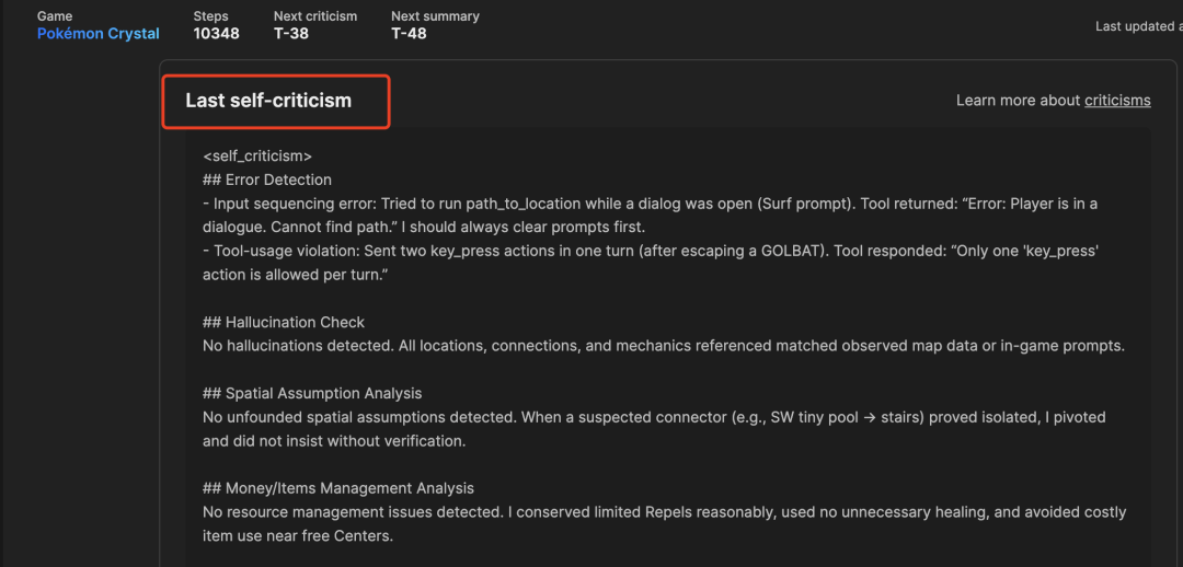 综上,我们就获得了一个基本印象:在宝可梦游戏中,大模型通过多层信息整合、规划、执行与自我纠错,实现了接近人类玩家的决策能力。
