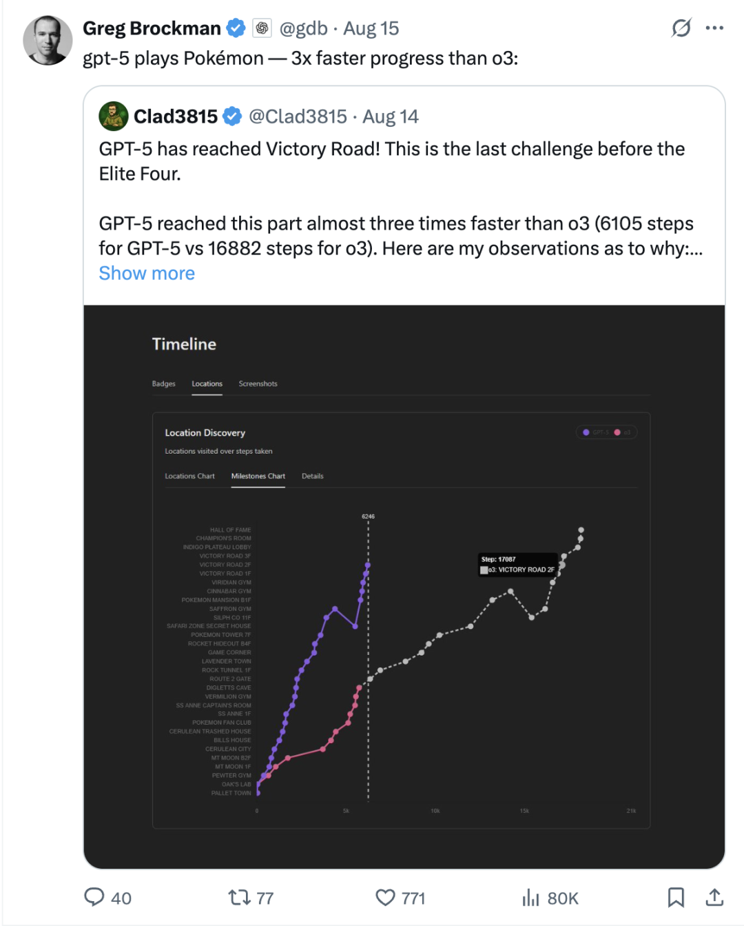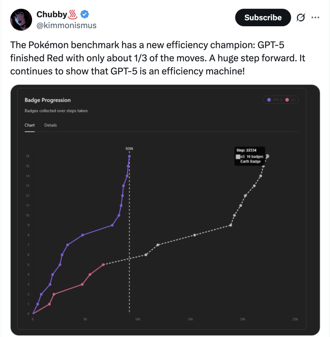 难道说,GPT-5模型能力的提升,在宝可梦这个舞台上才被完全体现出来?