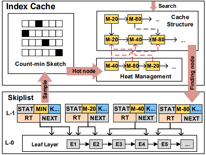 提出一种能够快速感知并缓存变化热点的轻量级缓存机制。使用Count-Min Sketch算法及时识别出热点数据,维护一个按热度排序的链表。计算节点缓存热点L1节点的最小键及存储地址,大幅降低热点数据加载延迟,提升存储系统的读性能。