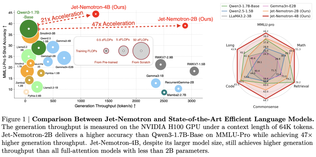 韩松团队推出了一款全新的基于后神经架构搜索的高效语言模型——Jet-Nemotron。