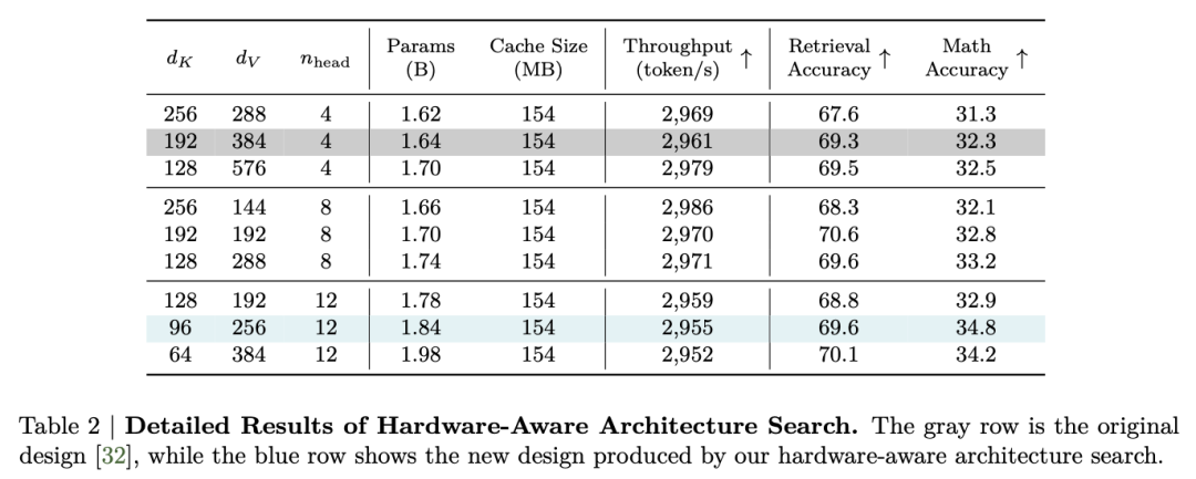 研究团队将KV缓存大小固定为原始设计的规格,并对key维度、value维度以及注意力头数进行了小规模的网格搜索。