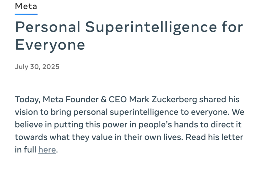 Meta迅速组建起了号称人才密度和算力密度双高的超级智能实验室,扎克伯格昭告天下要打造“个人级超级智能”,直接对标OpenAI和Google DeepMind。