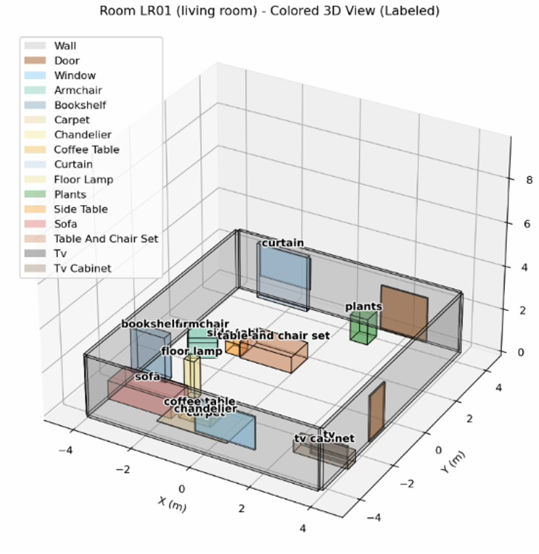 给GPT-5一张空间图,并且补充空间语言的描述,让它基于对空间的理解摆放常见的家具。