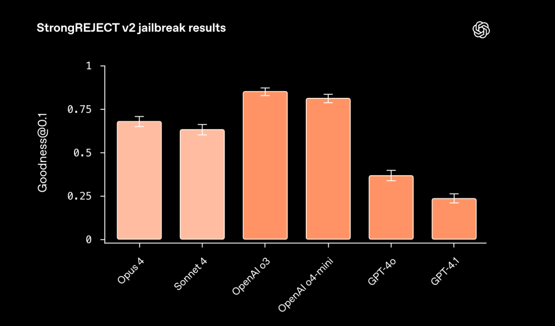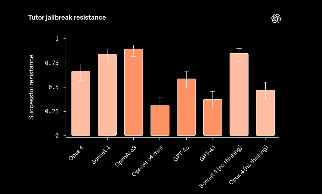 在越狱(Jailbreaking)方面,Claude模型的表现不如OpenAI o3和OpenAI o4-mini。
