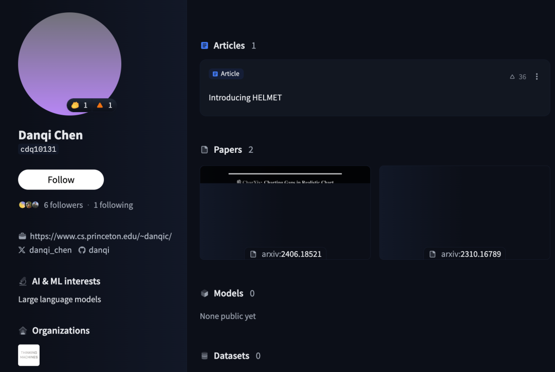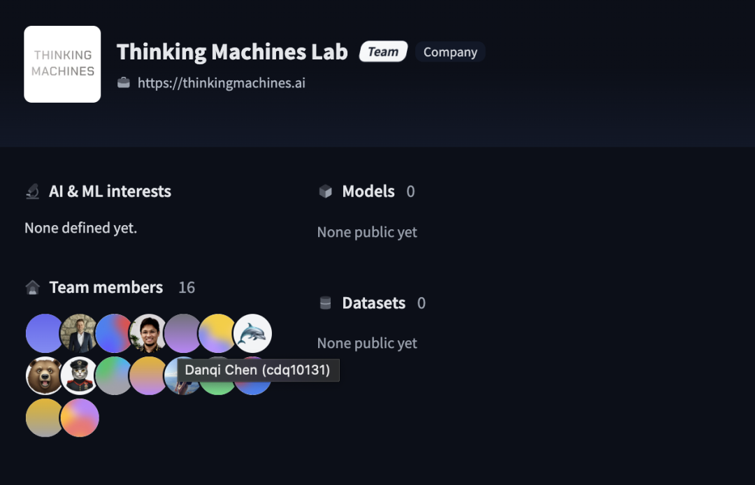 一则Thinking Machines团队HuggingFace主页上,出现了陈丹琦的名字。