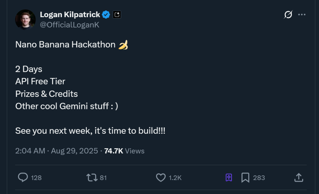顺带一提,谷歌这次还计划举办Nano Banana Hackathon(黑客马拉松)活动。