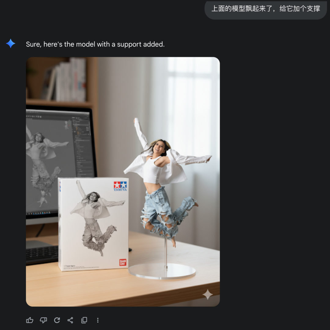 美中不足的是生成的“手办”好像没有支撑,但再补充一句就行。