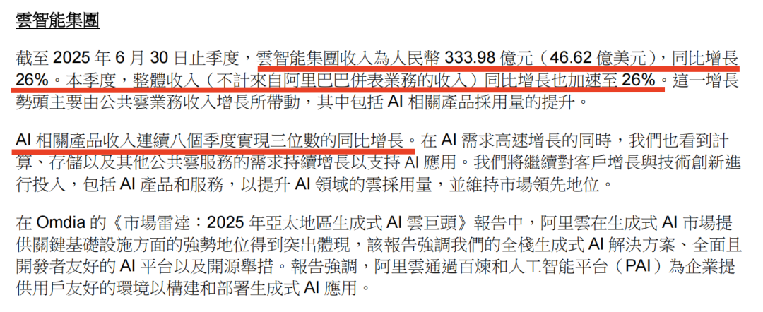 财报明确指出,AI相关产品收入已连续八个季度实现三位数同比增长,这种持续的高速增长在整个云计算行业都极为罕见。