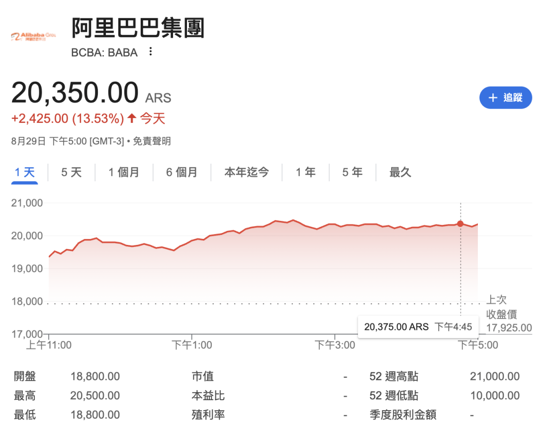 阿里巴巴美股收涨13.53%,市值一夜暴涨368亿美元(约2600亿人民币)