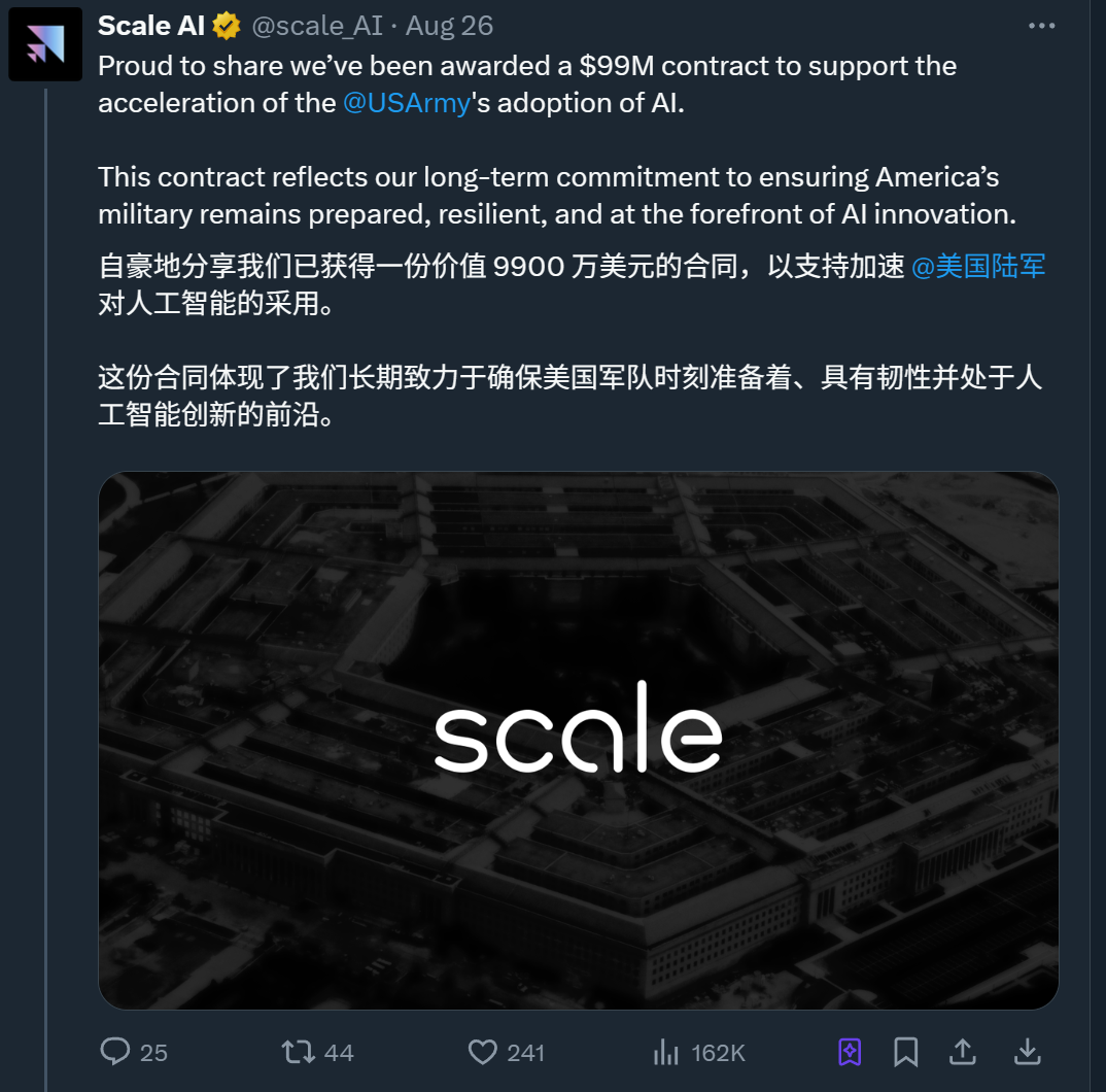 而Scale AI这边,虽然最新拿下了一笔9900万美元的政府合同,但事情也不少。