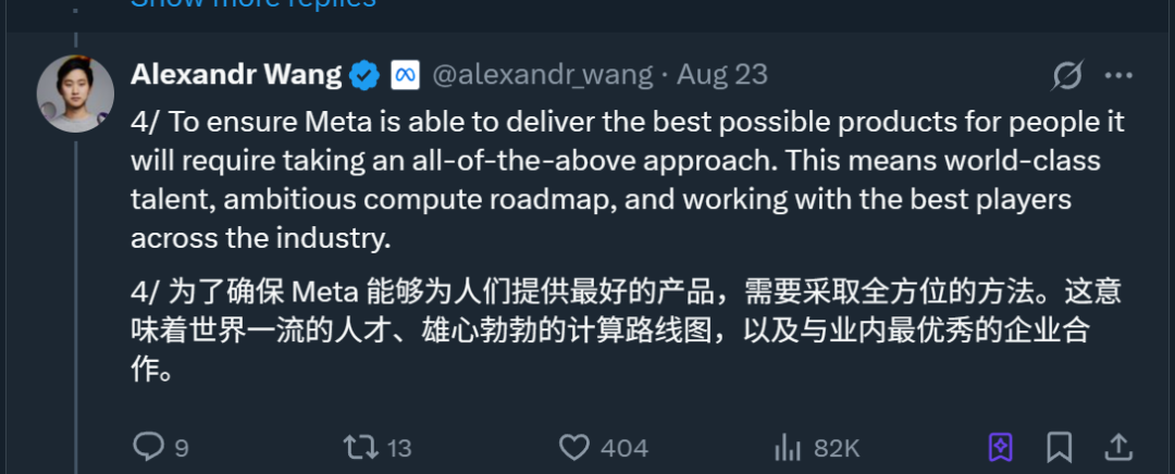 不过后来有爆料称,在Meta任期内,他主要负责数据运营团队,而不是超级智能实验室的核心部门TBD实验室。