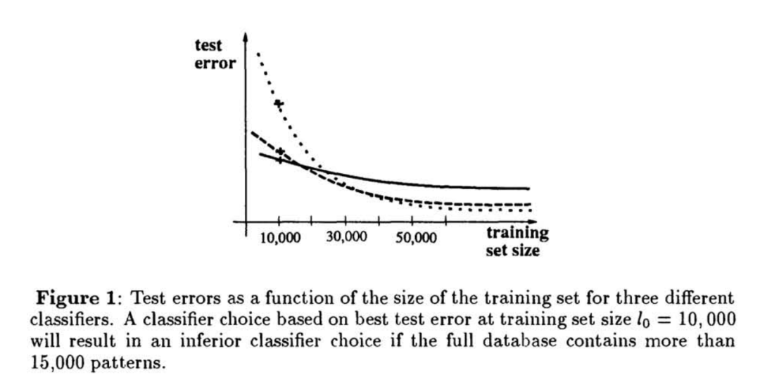 这项研究就是提出了一种预测方法,先在中等规模的数据集上训练,然后通过提出的学习曲线建模外推,预测其在大数据集上的表现。这样就不用对分类器进行完整训练,从而节省计算资源。