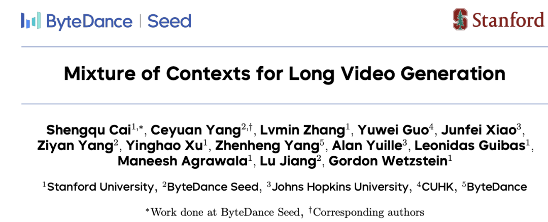 字节Seed与斯坦福等机构的研究人员一起推出的新模型,能让长视频生成的计算量降低85%。
