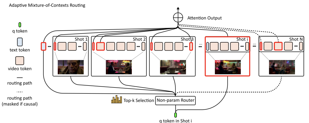 为此,团队提出了一种新的稀疏注意力机制——Mixture of Contexts(MoC)——作为有效的长期记忆检索引擎。