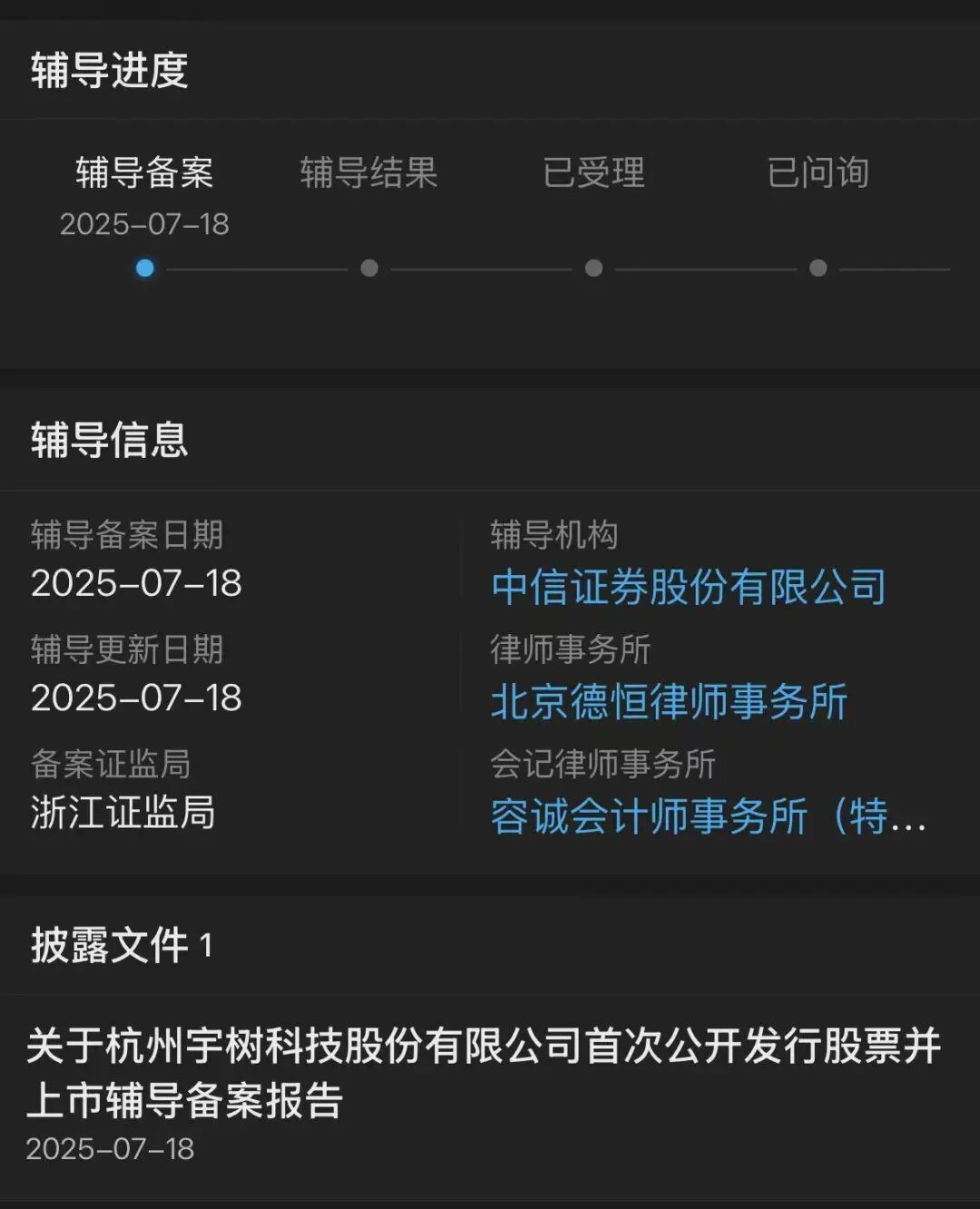 而时隔又一个月,也就是在7月18日,中国证监会官网信息显示,宇树科技已经在浙江证监局办理上市辅导备案,辅导机构为中信证券,这就标志着其IPO进程正式启动 。