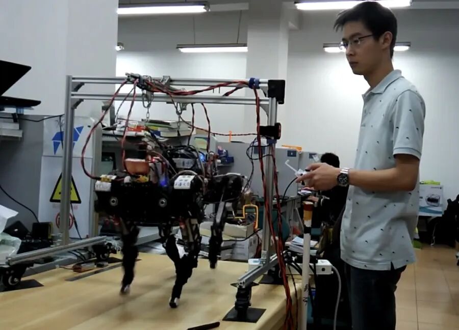 2016年8月,他独立开发出电机驱动的全自由度四足机器人XDog(后来Laikago的技术雏形)。