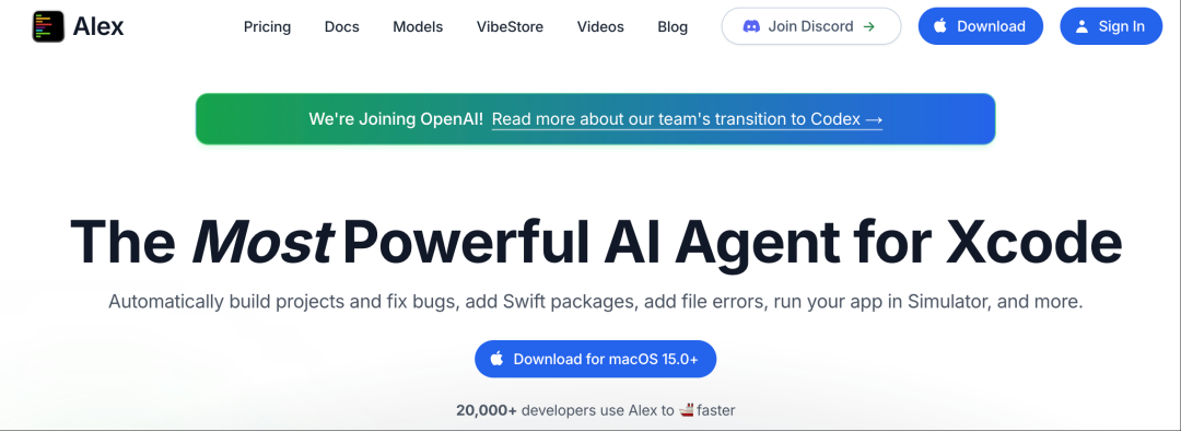 这家公司名为Alex,专注于为iOS开发者打造AI辅助工具——