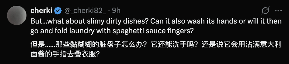 咦?它碰到脏盘子后会主动洗手吗?它会不会用沾满食物残渣的手再去叠衣服?