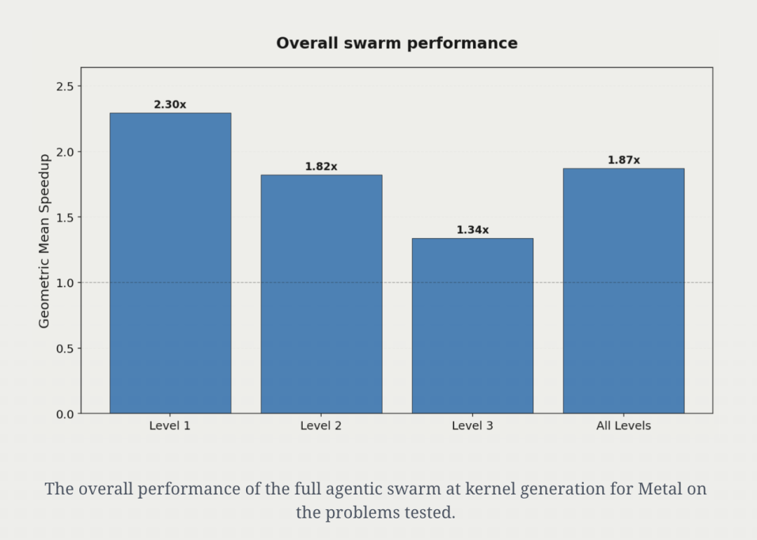 Gimlet Labs的最新研究显示,在苹果设备上,AI不仅能自动生成Metal内核,还较基线内核实现了87%的PyTorch推理速度提升。