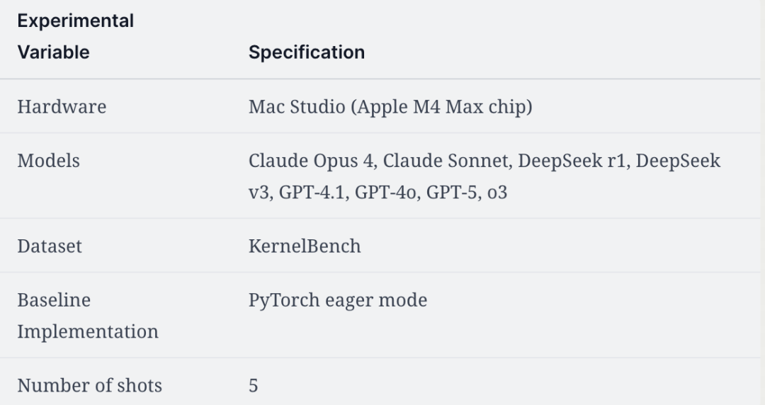 为了证明这一点,研究人员选取了来自Anthropic、DeepSeek和OpenAI的8个顶尖模型,让它们为苹果设备生成优化的GPU内核,以加速PyTorch推理速度。