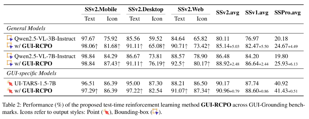 对于GUI-RCPO方法,团队使用去掉真值标签的ScreenSpot-v2作为训练数据集。