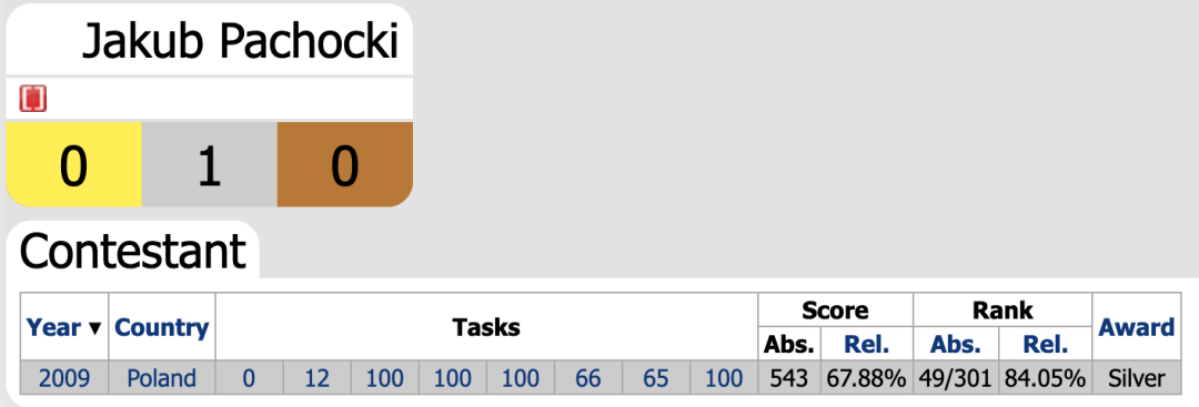 帕哥很幸运,不仅发现自己对计算机有兴趣,不久后还发现自己在这方面是真的有天赋:高中时期拿过国际信息学奥林匹克竞赛IOI的银牌。