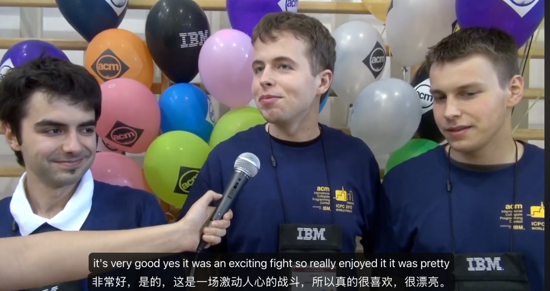2012年ICM-ICPC的金牌和Google Code Jam,至今仍然能搜到他在ICPC的获奖感言片段。