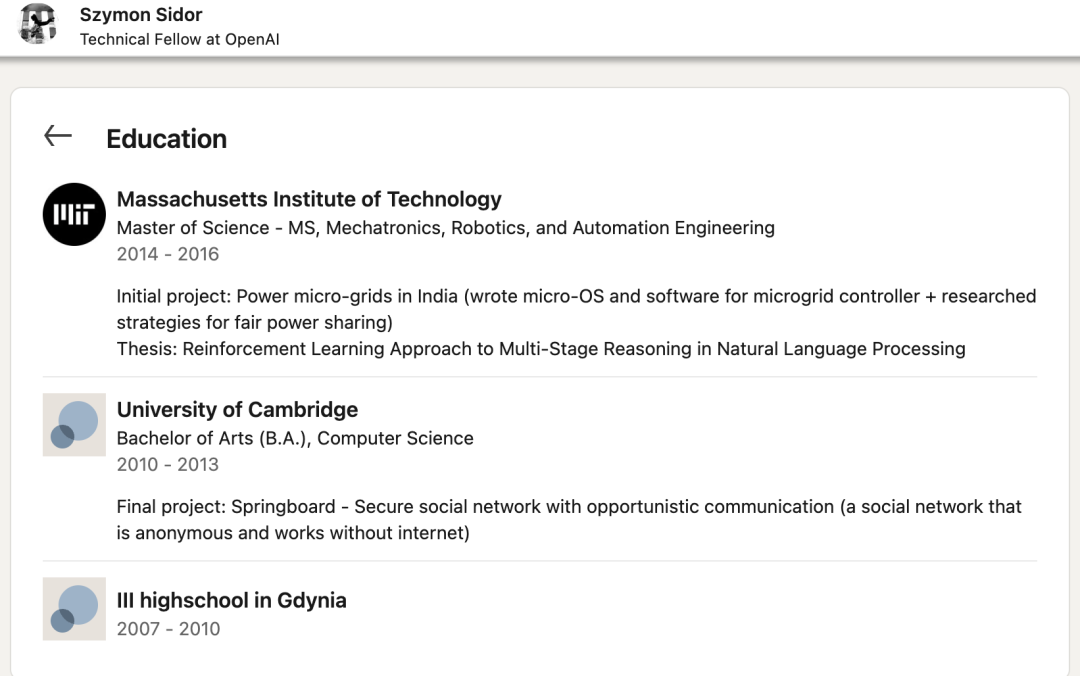 他们是OpenAI首席科学家Jakub Pachocki以及头衔为“Technical Fellow”的Szymon Sidor。