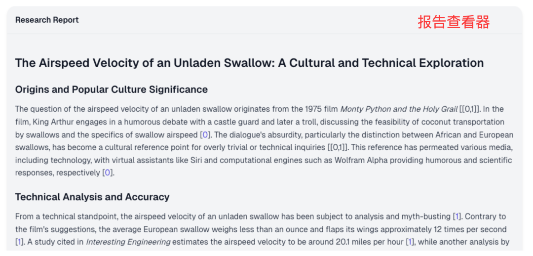 一个简单的用户界面:用于接收研究提示,持续向用户更新研究进度,并显示研究报告;