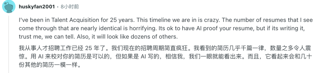 还有HR表示,真的要对那些AI生成的、长得一模一样的简历看吐了。